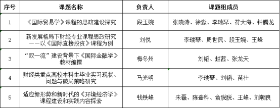 根據(jù)學(xué)校教務(wù)處《關(guān)于組織開展中央財經(jīng)大學(xué)教育教學(xué)改革基金2022年度課題申報工作的通知》(教字﹝2022﹞144號)安排,經(jīng)教師申報、專家評審、學(xué)院教學(xué)委員會審核、學(xué)院黨政聯(lián)席會審議,擬對5項(xiàng)課題予以立項(xiàng),具體名單如下: