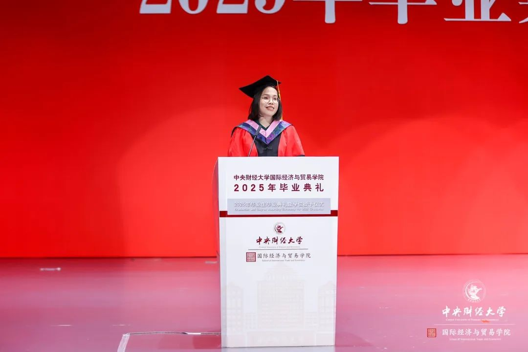 親愛(ài)的同學(xué)們,畢業(yè)意味著你們要揚(yáng)帆起航,去迎接屬于你們自己的廣闊天地。愿你們帶著在中財(cái)、在國(guó)貿(mào)的所學(xué)所能,去開(kāi)拓、去創(chuàng)新、去擔(dān)當(dāng),以龍馬精神擔(dān)乾坤之志,將個(gè)人的發(fā)展融入國(guó)家富強(qiáng)、民族復(fù)興、人類進(jìn)步的事業(yè)之中,展現(xiàn)中財(cái)國(guó)貿(mào)人的智慧與風(fēng)采!同時(shí),請(qǐng)同學(xué)們相信:無(wú)論你們攀登多么險(xiǎn)峻的高峰、航行多么遙遠(yuǎn)的海域,中財(cái)國(guó)貿(mào)永遠(yuǎn)是你們堅(jiān)實(shí)的后盾和溫暖的家園。老師也向你們承諾,我們將努力把國(guó)貿(mào)學(xué)院建設(shè)得更加卓越、更有影響力,讓它成為你們的驕傲源泉!