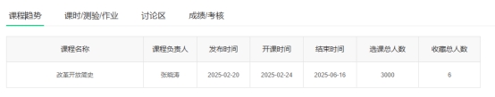 中央財經(jīng)大學國際經(jīng)濟與貿(mào)易學院推出的慕課《改革開放簡史》于2025年2月24日在大學生慕課平臺正式開課,作為平臺上首門聚焦“改革開放史”的通識教育課程,該課程一經(jīng)上線便引發(fā)廣泛關(guān)注。經(jīng)過一個學期的教學運行,課程成效顯著:選課人數(shù)突破3000人,近500名學員圓滿完成考核并將獲得證書,課程完成率超同類課程平均水平。