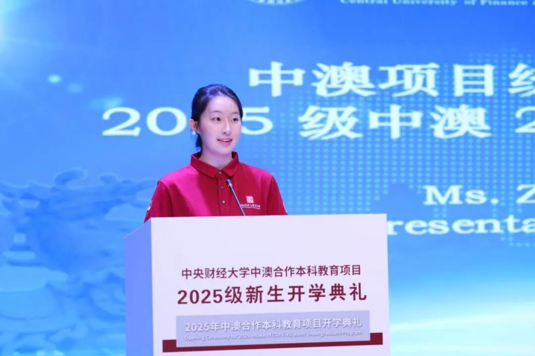 中澳項(xiàng)目統(tǒng)招生新生代表2025級(jí)中澳2班趙芳其同學(xué)發(fā)言