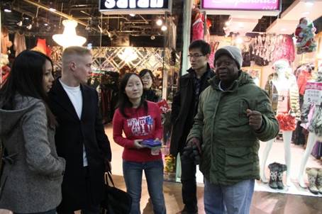 同學(xué)們正在向國際友人籌集募捐,得到了他們的積極響應(yīng)