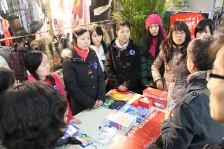 活動當天,同學(xué)們不畏嚴寒于下午1點提前到三里屯3.3服飾大廈和沃爾瑪山姆會員店,經(jīng)過瓷娃娃協(xié)會相關(guān)負責(zé)人對活動的的簡短介紹與培訓(xùn),2點左右同學(xué)們便開始了賀卡義賣活動。冬日的寒冷擋不住同學(xué)們心中的熱情,雖然義賣活動面臨一定的困難,但通過各位同學(xué)的耐心講解和真誠推廣,義賣活動于晚8點鐘圓滿結(jié)束,共籌集善款3746元,其中捐款715元。