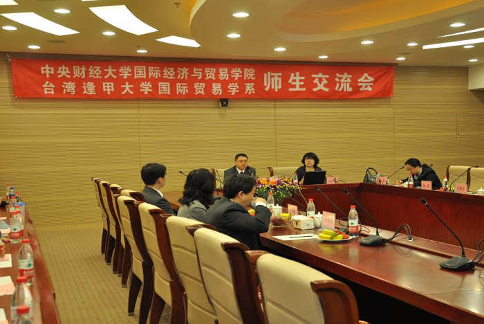 師生交流會于下午一點(diǎn)半在我校學(xué)術(shù)會堂604會議室舉行,我院張曉濤副院長主持會議。唐宜紅院長代表學(xué)院致辭,她向逢甲大學(xué)國際貿(mào)易系代表團(tuán)的到來表示熱烈歡迎,客人們介紹了我校的歷史沿革、發(fā)展概況、學(xué)科建設(shè)和人才培養(yǎng),著重介紹了我校國際經(jīng)濟(jì)與貿(mào)易學(xué)院的發(fā)展歷程以及科研、師資、學(xué)生培養(yǎng)等方面的情況。在逢甲大學(xué)江怡蒨主任致辭中,她對國際經(jīng)濟(jì)與貿(mào)易學(xué)院對此次交流的形成安排表示衷心的感謝,她介紹了逢甲大學(xué)的發(fā)展歷史、教學(xué)特色、師資力量和國際貿(mào)易系的學(xué)科建設(shè)、人才培養(yǎng)等相關(guān)情況,在致辭中江怡蒨主任對大陸的高等教育給予高度的評價,并誠摯邀請我校師生去逢甲大學(xué)進(jìn)行交流學(xué)習(xí)。唐宜紅院長與江怡蒨主任代表各自單位互贈紀(jì)念品。