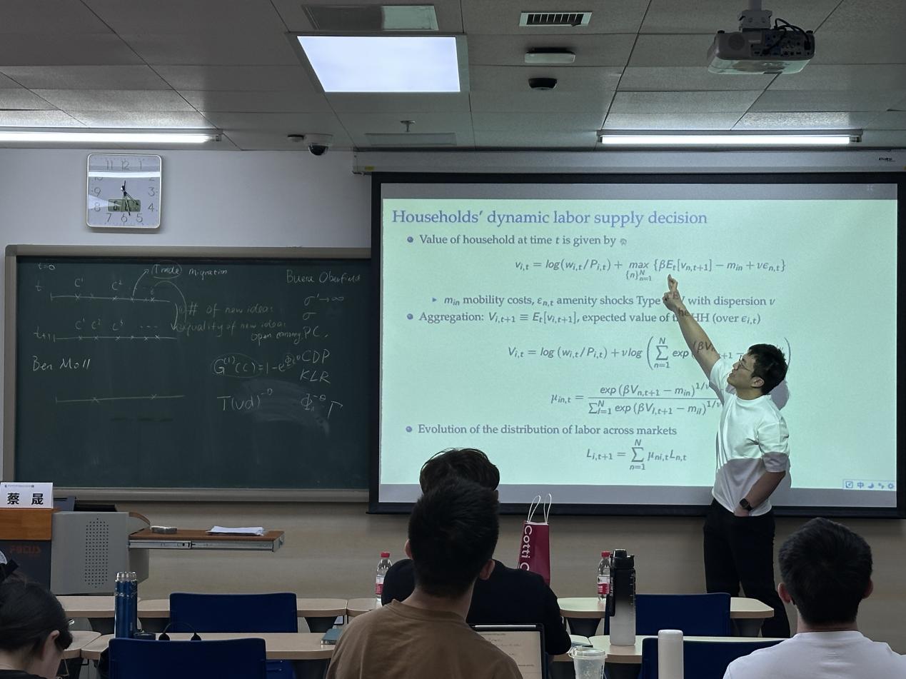 在本次短期課程中,蔡晟老師首先詳細講解了國際貿(mào)易領(lǐng)域模型中的技術(shù)概率假設(shè),以及在不同市場結(jié)構(gòu)中如何決定不同的一般均衡結(jié)果。其次,蔡老師深入闡述了囊括匹配的一般均衡框架并將其拓展至開放經(jīng)濟。最后,基于課程內(nèi)容,蔡老師結(jié)合自己的論文Mechanics of Spatial Growth,具體展示了該模型與方法在實際中的應(yīng)用。