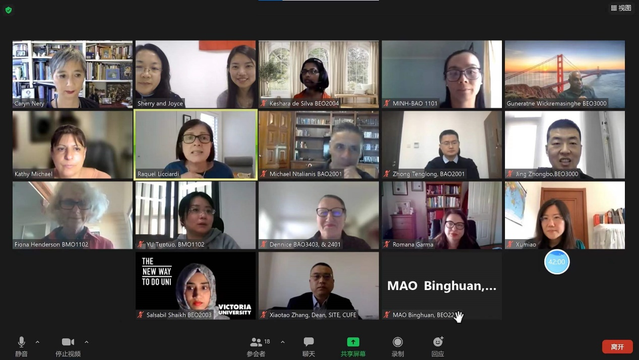 2021年12月22日,在中澳雙方管理團(tuán)隊(duì)的協(xié)商與共識(shí)下,中澳合作項(xiàng)目冬季小學(xué)期教師線上會(huì)議順利召開(kāi)。澳大利亞維多利亞大學(xué)商學(xué)院院長(zhǎng)Romana Garma、跨國(guó)教育項(xiàng)目主任Caryn Nery、教學(xué)主任Raquel Licciardi、合作課程協(xié)調(diào)員Kathy Michael,我院院長(zhǎng)、中澳合作項(xiàng)目主任張曉濤,黨委書(shū)記徐淼,副院長(zhǎng)、中澳合作項(xiàng)目副主任李瑞琴,中澳合作項(xiàng)目協(xié)調(diào)員秦伊倫,及數(shù)位中澳雙方冬季小學(xué)期課程教師參加會(huì)議,會(huì)議由Kathy Michael主持。