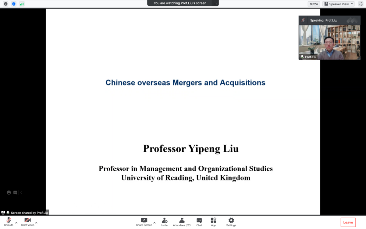鄭康(21 級國際商務(wù)碩士,法國):本人有幸聆聽了劉毅鵬教授關(guān)于“國際商務(wù)與中國管理實踐”的專題講座。全程我認真地聽著,詳細地記錄筆記。劉毅鵬教授深入淺出對中國企業(yè)海外并購、中國創(chuàng)新創(chuàng)業(yè)管理、數(shù)字化平臺等主題作了詳盡的講解。聽完講座后,我感受頗深,受益匪淺!經(jīng)過教授的講解,加深了我對中國企業(yè)海外并購的理解,劉毅鵬教授深入剖析了企業(yè)的并購過程,并通過具體事例使我們對企業(yè)進行并購前與后等方面有了更深層次的了解。最后非常感謝劉教授的傾囊相授,同時也感謝學院組織這次講座!