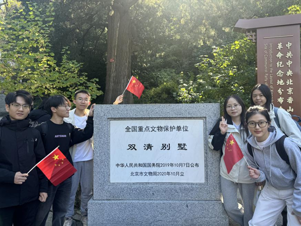 紅旗飄揚(yáng),信仰如炬。此次活動(dòng)地點(diǎn)主要在香山的雙清別墅,雙清別墅位于香山公園南麓的半山腰,是中國(guó)共產(chǎn)黨“進(jìn)京趕考”第一站。它曾經(jīng)成為中共中央的指揮中心,見證了中國(guó)革命走向勝利的歷程。國(guó)際商務(wù)專業(yè)碩士研究生黨支部聯(lián)合國(guó)際貿(mào)易學(xué)碩士研究生黨支部,在學(xué)院黨委的指導(dǎo)下,圍繞“一個(gè)主題”——“香山秋風(fēng)舞紅葉,革命精神振人心”;聚焦“三個(gè)維度”——“革命思想啟新程、重溫歷史憶初心、講解參觀擔(dān)使命”;創(chuàng)新“六種形式”——“齊唱紅色旋律、分享革命故事、重現(xiàn)香山論政、敘述雙清歷史、朗誦激昂詩(shī)歌、探訪先輩故居”,對(duì)香山背后的紅色故事和偉大的革命精神進(jìn)行深度探尋。