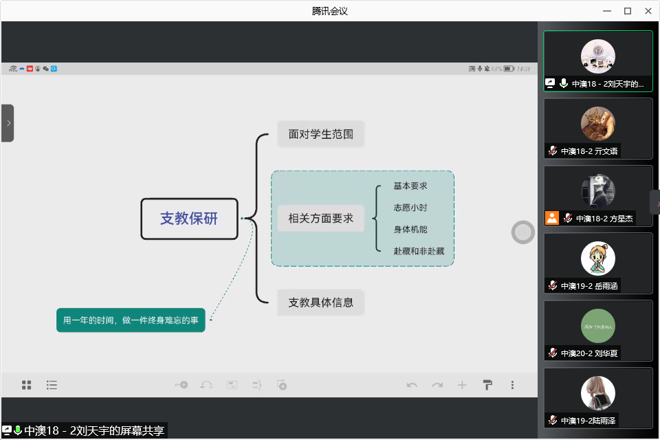 最后,劉天宇向大家介紹了支教保研的面向范圍和選拔要求。作為一名即將遠(yuǎn)赴支教的本科生,他說支教是用一年的時間來做一件終身難忘的事。他向大家介紹了支教保研對志愿小時數(shù)、體檢、成績與綜合素質(zhì)測評方面的具體要求,并向大家說明所了解到的支教環(huán)境,希望有支教保研想法的同學(xué)可以在前三學(xué)年積極參加志愿服務(wù),積累經(jīng)驗(yàn)。