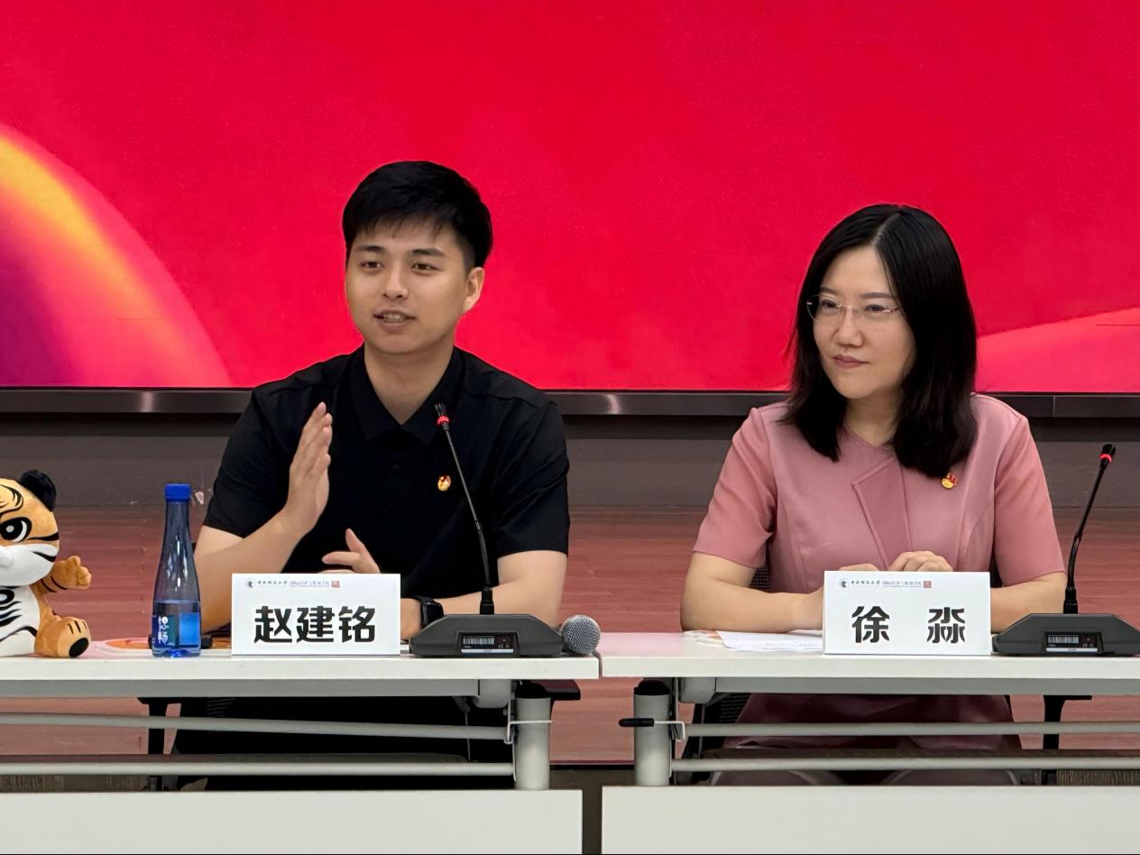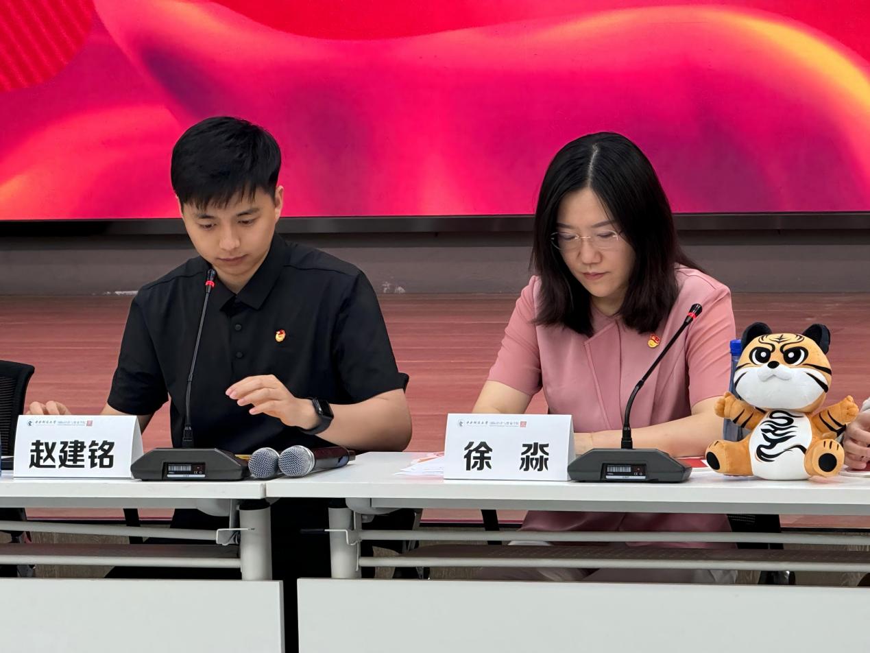 為深入學習貫徹黨的二十大精神,引導青年學生堅定理想信念、錘煉過硬本領、勇?lián)鷷r代使命,2025年6月21日上午,國際經(jīng)濟與貿(mào)易學院在沙河校區(qū)大學生活動中心融想多功能廳隆重舉辦“請黨放心,強國有我”主題大思政課。學院黨委書記徐淼、團委書記趙子琦出席活動,“建黨百年”大會領誦員、學院2025屆碩士畢業(yè)生趙建銘作為特邀嘉賓分享成長經(jīng)歷。學院2025年第一批新團員及2025屆畢業(yè)生代表共同參加了本次活動。