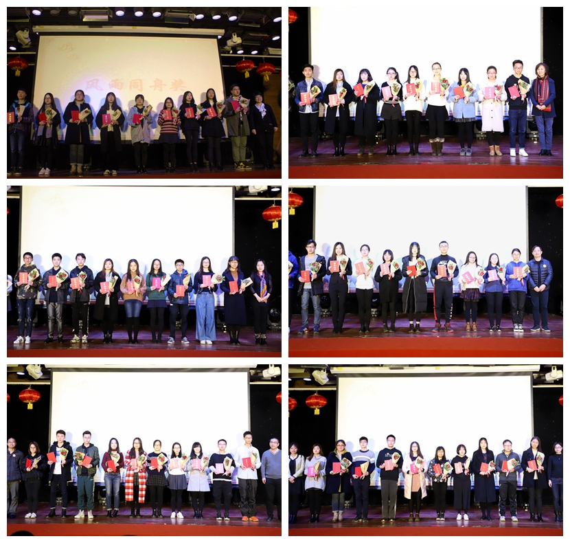 接下來進入了第二輪的頒獎環(huán)節(jié),這次分別由副院長符大海老師為同學頒發(fā)革故鼎新獎;由林發(fā)勤老師和楊武老師為同學頒發(fā)卓越骨干獎;由顏箐老師和趙茜老師為同學頒發(fā)百花齊放獎。該輪頒獎表彰了在集體建設(shè)、學術(shù)科研及特色活動中有突出表現(xiàn)的同學,各獲獎同學上臺領(lǐng)獎后與老師親切合影。