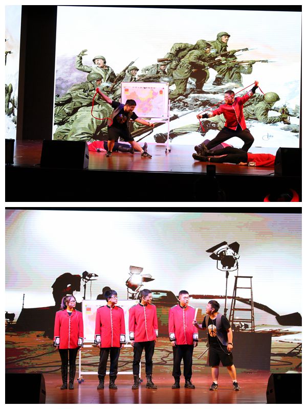 晚會(huì)第一個(gè)章節(jié)是“不負(fù)初心”,希望畢業(yè)生們?cè)诮窈蟮娜松缆飞喜煌?dāng)初的理想,不斷挑戰(zhàn)自己,放飛夢(mèng)想。動(dòng)感的音樂響起,八位青春靚麗的中財(cái)姑娘踏著輕快的舞步入場(chǎng),節(jié)奏變幻,她們?cè)趫?chǎng)中盡情展現(xiàn)自己的舞姿,絢麗的燈光中,她們將昂揚(yáng)向上、活力四射的青春氣息表現(xiàn)得淋漓盡致。接著兩位陽光帥氣的大男孩用精彩絕倫的街舞技巧再次引起現(xiàn)場(chǎng)同學(xué)的陣陣掌聲,之后七個(gè)畢業(yè)生同樣用爵士舞在臺(tái)上展現(xiàn)出了她們最瀟灑昂揚(yáng)的姿態(tài),她們的笑臉如同七支美麗的花,獲得了現(xiàn)場(chǎng)觀眾的陣陣掌聲。隨后,戲劇團(tuán)帶來了小品表演《拍戲》,演員逼真的演技、妙語連珠的臺(tái)詞,幽默風(fēng)趣的表演讓觀眾忍俊不禁之余又勾起了17屆畢業(yè)生曾經(jīng)的回憶。“不負(fù)初心”的最后一個(gè)節(jié)目,《煙雨等你》,是由藝術(shù)團(tuán)、舞蹈團(tuán)和器樂團(tuán)聯(lián)袂表演的器樂舞蹈節(jié)目,在西洋樂與絲竹完美融合的音樂中,六位身著傳統(tǒng)服飾的同學(xué)向徐徐走出,她們身著青花瓷水袖,手里撐著一把綢傘,仿把觀眾們帶回了江南水鄉(xiāng)煙雨佳人的世界里。水袖翩飛,他們手中的傘也跟著舞動(dòng)起來,蔥指成蘭,畫風(fēng)唯美。觀眾們深深地沉醉在那荷塘葉色的場(chǎng)景與“天青色等煙雨,而我在等你”的動(dòng)人旋律中。