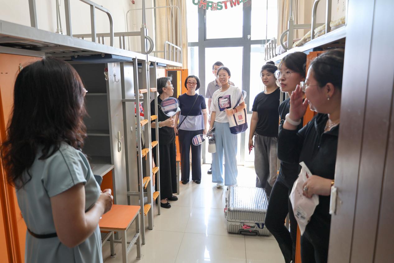 在班主任和新生輔導(dǎo)員的陪同下,副校長(zhǎng)朱凌云、學(xué)院黨委書(shū)記徐淼、院長(zhǎng)張曉濤、副院長(zhǎng)李瑞琴走訪了新生宿舍,關(guān)心新生們的住宿情況,并對(duì)大學(xué)生活提出寶貴建議。