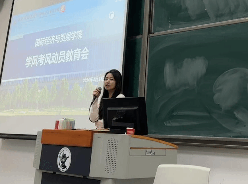 國(guó)際合作辦公室主任秦伊倫在會(huì)上介紹了本學(xué)期學(xué)生合作課的上課情況,指出同學(xué)們要認(rèn)真遵守學(xué)校的規(guī)章制度,端正學(xué)風(fēng),嚴(yán)肅考紀(jì),扎實(shí)復(fù)習(xí),誠(chéng)信應(yīng)考。最后秦老師希望大家將恪守誠(chéng)信轉(zhuǎn)化為行動(dòng)自覺(jué),始終養(yǎng)成遵守學(xué)術(shù)規(guī)范、遵守考場(chǎng)紀(jì)律的求實(shí)作風(fēng)。