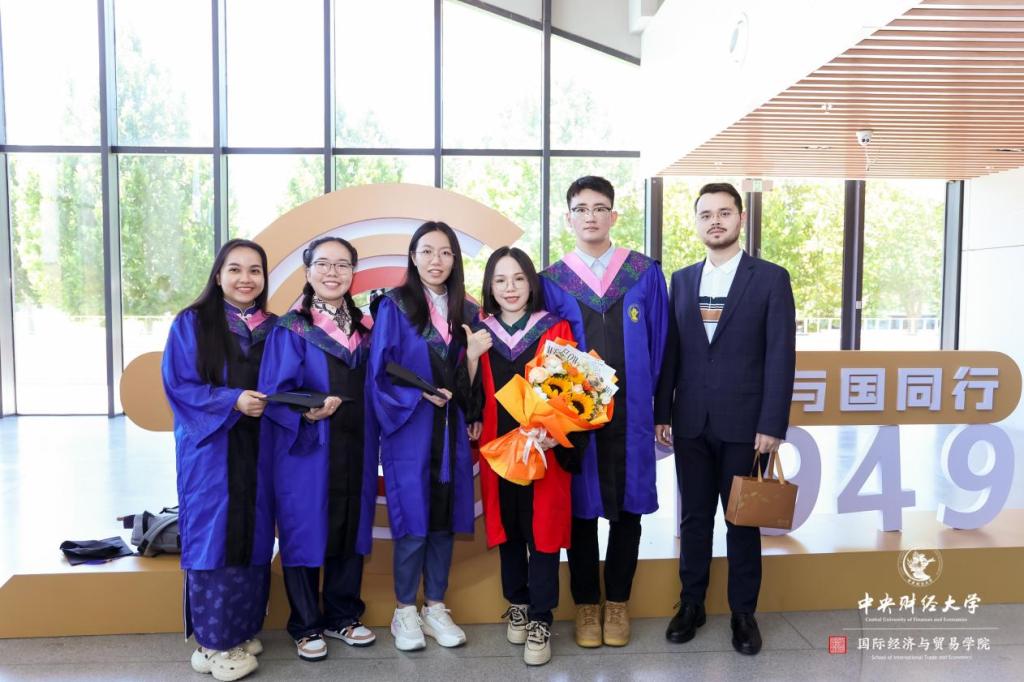 國(guó)際經(jīng)濟(jì)與貿(mào)易學(xué)院留學(xué)生畢業(yè)生代表、2023級(jí)國(guó)際商務(wù)碩士阮氏花(越南)同學(xué)發(fā)言。她衷心感謝兩院的全方位培養(yǎng),讓自己在中華文化的熏陶中成長(zhǎng),培育了全球視野與責(zé)任擔(dān)當(dāng)。她感恩老師們的學(xué)術(shù)引領(lǐng)與生活關(guān)懷,溫暖了自己在異國(guó)求學(xué)的時(shí)光,也向并肩同行的畢業(yè)生同學(xué)道賀,難忘同窗時(shí)光中結(jié)下的深厚跨國(guó)情誼,以及從中收獲的智慧與勇氣。最后,她表示作為國(guó)貿(mào)學(xué)子,將秉承母校"龍馬精神",以凌云之志和實(shí)干之勇,成為中外交流的橋梁,促進(jìn)民心相通與共同繁榮。