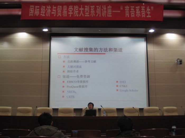 首先,李瑞琴老師從本科生畢業(yè)論文的重要性、學(xué)生在發(fā)表論文時(shí)遇到的問題和誤區(qū)出發(fā),強(qiáng)調(diào)了學(xué)術(shù)論文寫作與研究在大學(xué)生學(xué)習(xí)中的重要性以及論文寫作訓(xùn)練的重要意義。隨后,李老師詳盡的講解了學(xué)術(shù)論文寫作過程的各個(gè)方面,關(guān)于論文的選題,李老師建議同學(xué)們遵循專業(yè)、價(jià)值、適眾和興趣四原則進(jìn)行廣泛閱讀,了解前沿,并給同學(xué)們推薦了綜述性論文的網(wǎng)站和查找方法,解決了大家尋找資料無從下手的難題;李老師還結(jié)合例子給同學(xué)們講解了選題的大小難易掌握問題,給同學(xué)們寫學(xué)術(shù)論文的選題環(huán)節(jié)指明了方向。接下來,李老師給同學(xué)們介紹了大量的數(shù)據(jù)庫和文獻(xiàn)搜集的三種方法來講解關(guān)于文獻(xiàn)搜集及整理的問題。正文寫作方面,李老師給出了提出問題、分析問題、解決問題的大框架思路,并細(xì)致地講解了正文寫作中應(yīng)該注意的各個(gè)方面并結(jié)合許多本科生在畢業(yè)論文中所犯的錯(cuò)誤給大家提出了建議。最后,李老師在論文修改方面給大家列舉了一些注意事項(xiàng)。