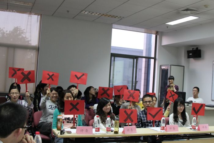 5月10日,學(xué)院南路校區(qū)中財(cái)大廈三樓案例教室熱鬧非凡。由我院學(xué)生會(huì)舉辦的凡客杯辯論賽總決賽在此隆重舉行。10級(jí)中澳班的四位班級(jí)助理出席了本次辯論賽并擔(dān)任評(píng)委。