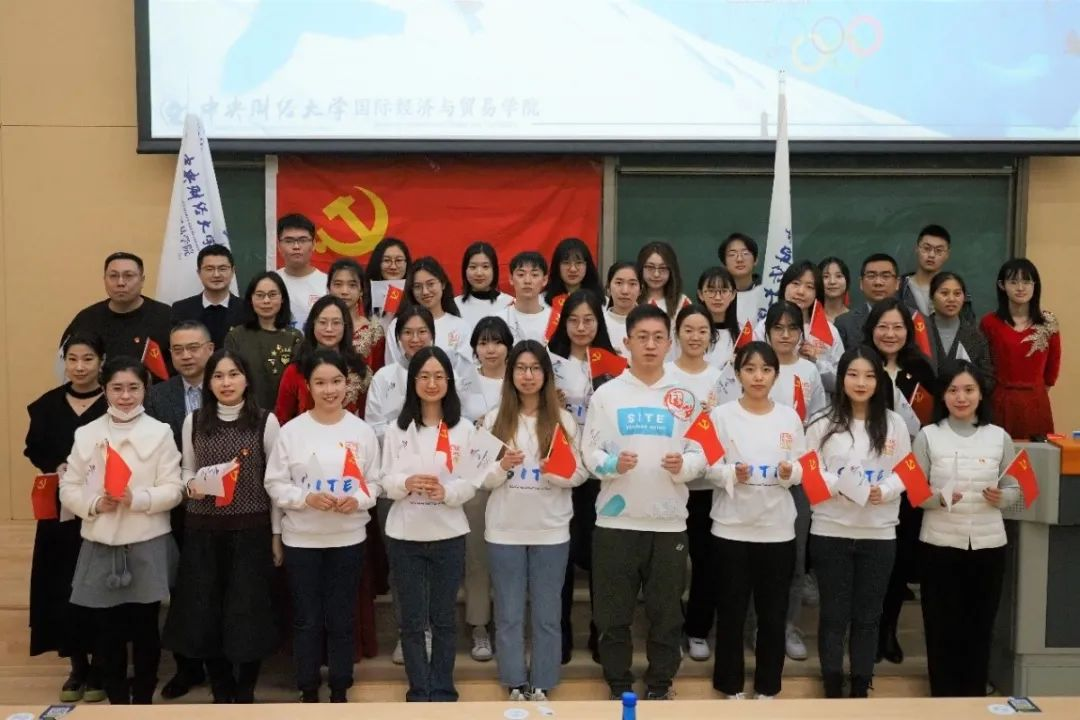 儀式伊始,院黨委書記徐淼致辭。徐淼老師向我院30位即將踏上北京冬奧會(huì)、冬殘奧會(huì)的志愿者同學(xué)們表達(dá)最誠(chéng)摯的感謝和祝愿。徐老師回顧了國(guó)貿(mào)青年在長(zhǎng)安街“春潮滾滾”的方陣、鳥巢體育館《偉大征程》情景劇及在天安門廣場(chǎng)向黨莊嚴(yán)獻(xiàn)禮等大型志愿服務(wù)中的精彩表現(xiàn),贊揚(yáng)了國(guó)貿(mào)學(xué)子的奉獻(xiàn)與擔(dān)當(dāng),期待志愿者們繼續(xù)在冬奧會(huì)、冬殘奧會(huì)志愿服務(wù)期間發(fā)揮青年榜樣力量,囑托大家注意防寒保暖,加強(qiáng)自我防護(hù),承諾國(guó)貿(mào)大家庭永遠(yuǎn)在同學(xué)們的身后為大家保駕護(hù)航。隨后,徐淼老師介紹了學(xué)院冬奧志愿服務(wù)保障工作,學(xué)院已成立“國(guó)際經(jīng)濟(jì)與貿(mào)易學(xué)院冬奧會(huì)、冬殘奧會(huì)志愿者臨時(shí)黨支部”,充分發(fā)揮黨的組織優(yōu)勢(shì)、黨的基層細(xì)胞戰(zhàn)斗堡壘作用以及黨員先鋒引領(lǐng)和模范帶頭作用,提高我院冬奧志愿者的服務(wù)意識(shí)和服務(wù)能力。期待臨時(shí)黨支部能夠不負(fù)重托,以“助力體育強(qiáng)院,傳承建黨精神,擔(dān)當(dāng)時(shí)代責(zé)任,樹立世界眼光,傳遞中國(guó)力量”為信念,帶領(lǐng)全體志愿者為舉辦一場(chǎng)精彩、非凡、卓越的冰雪盛會(huì)貢獻(xiàn)國(guó)貿(mào)力量,續(xù)寫中財(cái)龍馬乾坤的靚麗篇章!