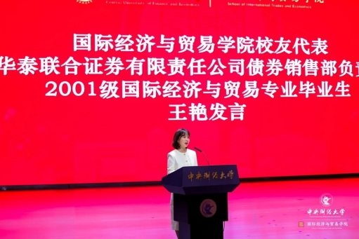 國際經(jīng)濟(jì)與貿(mào)易學(xué)院2024級(jí)新生開學(xué)典禮:華泰聯(lián)合證券有限責(zé)任公司債券銷售部負(fù)責(zé)人、2001級(jí)國際經(jīng)濟(jì)與貿(mào)易專業(yè)本科生王艷發(fā)言