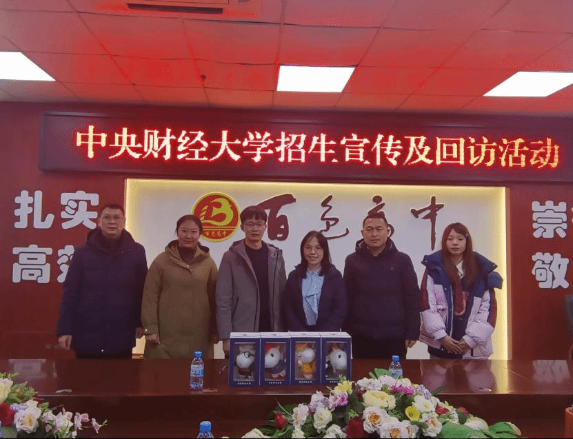 1月24日下午,招生工作組赴廣西百色高級(jí)中學(xué)進(jìn)行優(yōu)質(zhì)生源基地回訪并開(kāi)展招生宣傳工作,百色高級(jí)中學(xué)校長(zhǎng)磨志功、校長(zhǎng)助理兼教務(wù)處主任王莉萍、行政辦公室主任鞏海東、教務(wù)處副主任李鴻出席活動(dòng)。在座談環(huán)節(jié),蒙雙副教授介紹了中央財(cái)經(jīng)大學(xué)的學(xué)科優(yōu)勢(shì)、人才培養(yǎng)以及近幾年中央財(cái)經(jīng)大學(xué)在百色高級(jí)中學(xué)的招生情況,王莉萍主任介紹了百色高級(jí)中學(xué)的人才培養(yǎng)以及學(xué)校發(fā)展情況,磨志功校長(zhǎng)對(duì)于加強(qiáng)高中和高校之間的交流和合作提出了建議。雙方還就如何加強(qiáng)合作推出名家講壇、如何提升招生宣傳實(shí)效、加強(qiáng)與生源基地聯(lián)系等方面進(jìn)行了充分溝通。隨后蒙雙副教授向百色高級(jí)中學(xué)贈(zèng)送了學(xué)校吉祥物和宣傳冊(cè)。