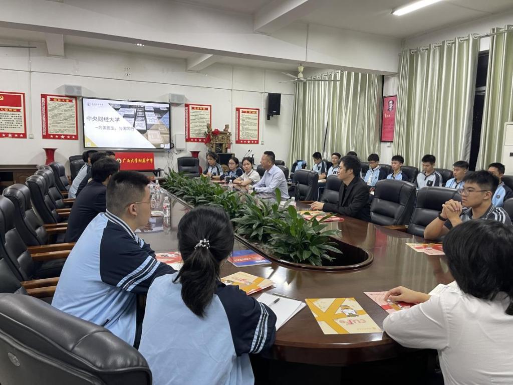 趙虎老師從學校發(fā)展歷史、學科實力、人才培養(yǎng)、就業(yè)前景、校園環(huán)境等方面介紹展現(xiàn)中央財經(jīng)大學,并給學生們分發(fā)了招生手冊和紀念禮物。在場師生紛紛表示收獲頗豐,我校與兩所高中的交往得到進一步的積累。