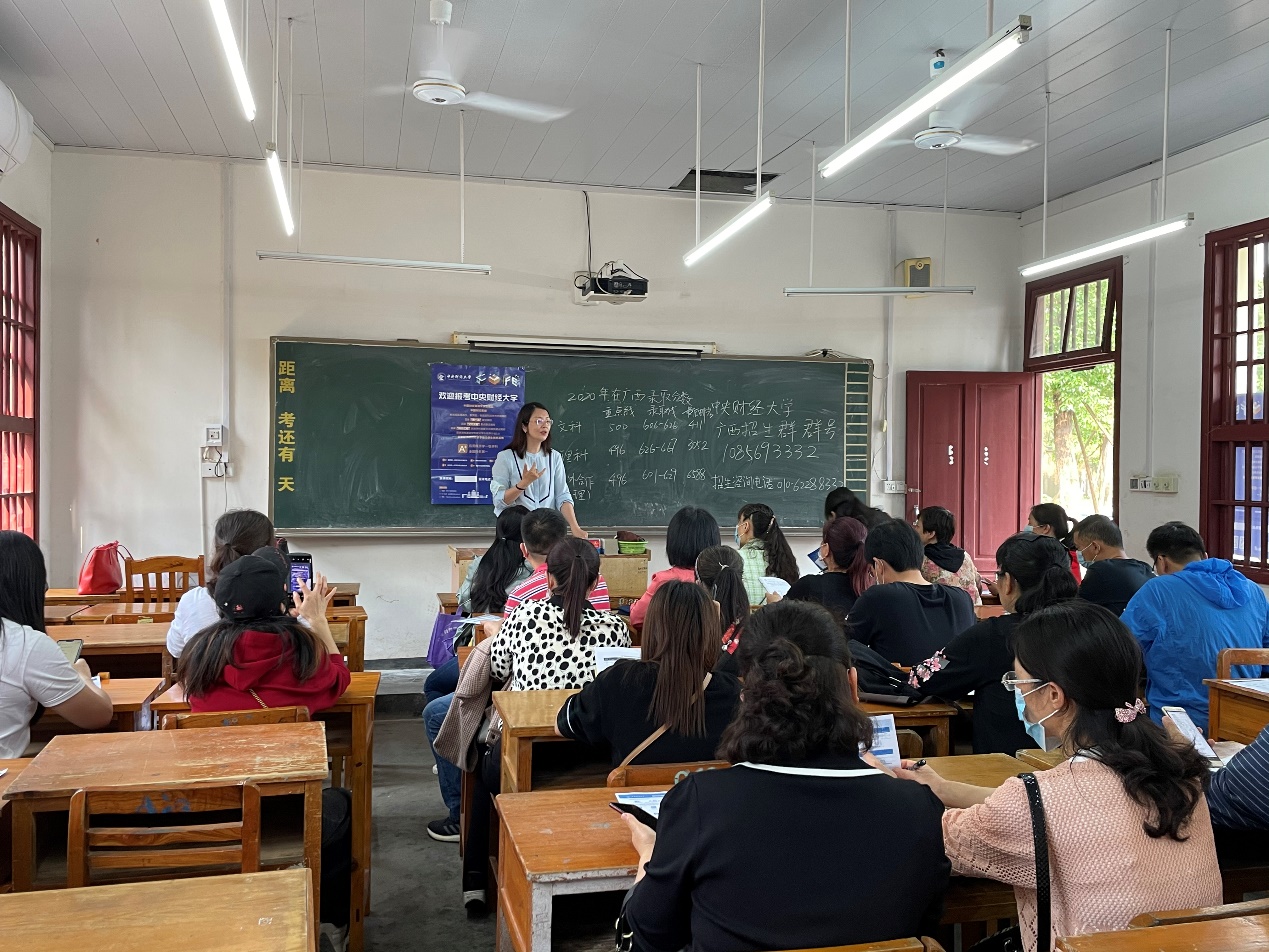 4月24日上午,招生宣傳組來到廣西玉林高中,與玉林高中董副校長(zhǎng)、校辦主任劉日芳老師進(jìn)行了座談。雙方對(duì)近幾年中央財(cái)經(jīng)大學(xué)在玉林高中的招錄情況進(jìn)行了充分交流,李瑞琴教授高度肯定玉林高中長(zhǎng)期以來為中央財(cái)經(jīng)大學(xué)輸送了大批優(yōu)秀學(xué)子。之后,“龍馬講堂”專家王立勇教授做了題為《經(jīng)濟(jì)學(xué)中的因果效應(yīng)推斷》的學(xué)術(shù)講座,他用同學(xué)們身邊的例子,以幽默詼諧的語言,介紹了何為因果效應(yīng)、如何進(jìn)行因果效應(yīng)推斷,增強(qiáng)了同學(xué)們對(duì)未來經(jīng)濟(jì)學(xué)學(xué)習(xí)的熱情,現(xiàn)場(chǎng)互動(dòng)頻繁,氣氛熱烈。之后,招生宣傳組對(duì)同學(xué)們提出的問題進(jìn)行了耐心解答,并發(fā)放了學(xué)校的宣傳資料和紀(jì)念品。