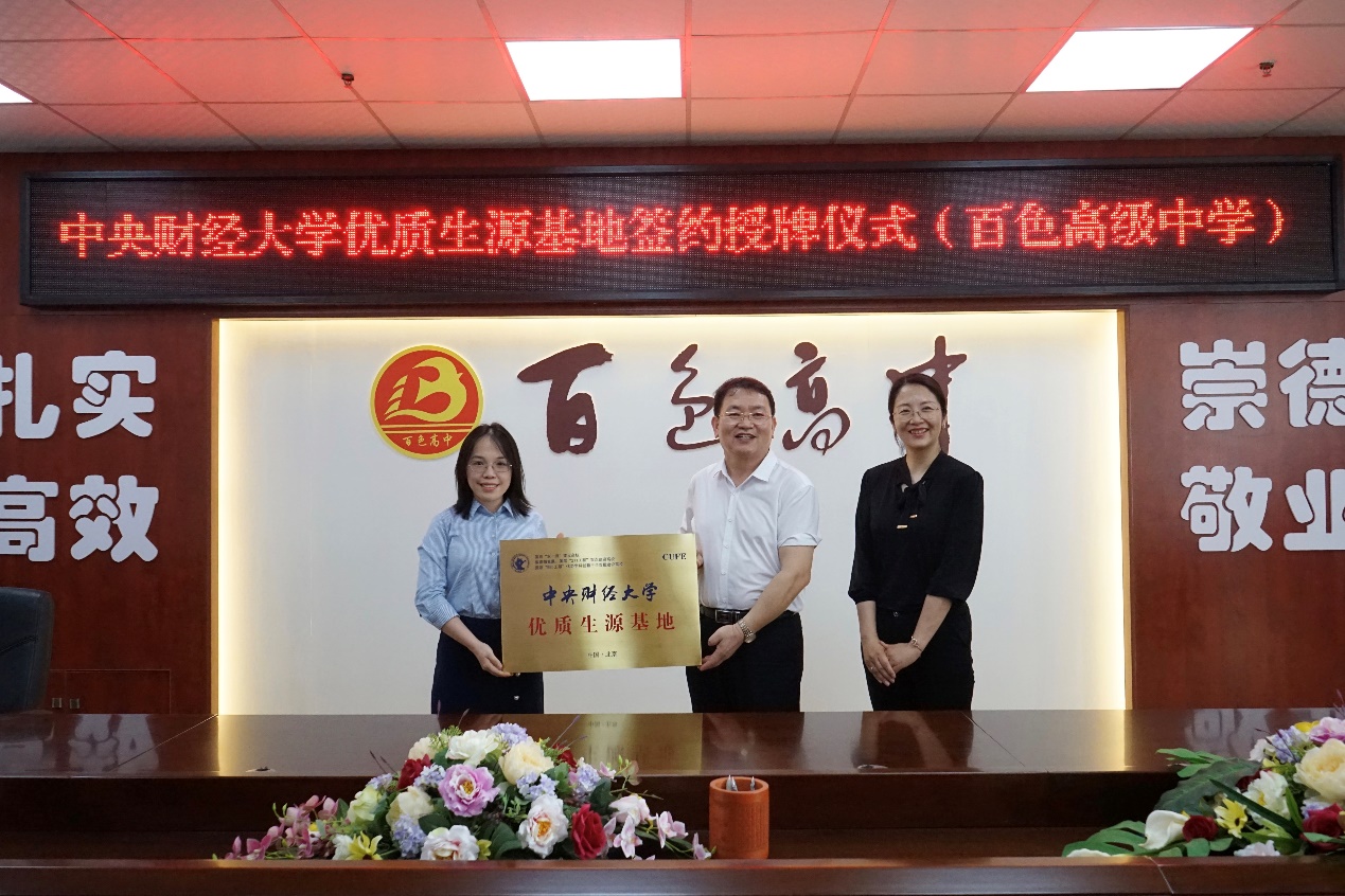 4月20日,招生宣傳組從南寧出發(fā)赴廣西百色開展招生宣傳工作。下午,程麗芳老師和蒙雙老師來到廣西百色高中,與高中校領(lǐng)導(dǎo)進(jìn)行座談,雙方交流了學(xué)校的發(fā)展情況和招生情況,并舉行了中央財(cái)經(jīng)大學(xué)優(yōu)質(zhì)生源基地簽約和掛牌儀式。百色高中成為我校在廣西的第8所優(yōu)質(zhì)生源基地高中。會(huì)后,招生宣傳組在百色高中開展招生咨詢活動(dòng),就考生和家長(zhǎng)對(duì)于我校辦學(xué)特色、招生政策的疑問一一進(jìn)行解答。