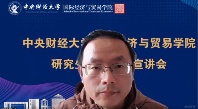 張曉濤院長介紹了學(xué)院歷史、學(xué)科建設(shè)、人才培養(yǎng)和就業(yè)優(yōu)勢等方面情況。他強(qiáng)調(diào),國際經(jīng)濟(jì)與貿(mào)易學(xué)院碩士生培養(yǎng)依托學(xué)校應(yīng)用經(jīng)濟(jì)學(xué)一流學(xué)科群,對(duì)標(biāo)境內(nèi)外一流院校,具有中財(cái)特色,在國內(nèi)外具有良好的知名度與美譽(yù)度。學(xué)院承擔(dān)學(xué)校應(yīng)用經(jīng)濟(jì)學(xué)一流學(xué)科主干領(lǐng)域“新發(fā)展格局中的開放型經(jīng)濟(jì)理論與政策”建設(shè)任務(wù),取得豐碩成果;學(xué)院三個(gè)本科專業(yè)在軟科排名中均獲評(píng)A+。學(xué)院畢業(yè)生在金融機(jī)構(gòu)、央企、國家部委等經(jīng)濟(jì)、管理領(lǐng)域表現(xiàn)優(yōu)異。針對(duì)當(dāng)前經(jīng)濟(jì)社會(huì)對(duì)國際經(jīng)貿(mào)、國際商務(wù)人才需求的趨勢,他指出,強(qiáng)國建設(shè)需要經(jīng)濟(jì)管理類高水平人才支撐,科技教育與人文社科教育協(xié)同發(fā)展共同助力經(jīng)濟(jì)社會(huì)高質(zhì)量發(fā)展。談及專業(yè)自信,張?jiān)洪L指出學(xué)院畢業(yè)生在人才市場上與頂尖高校學(xué)生同臺(tái)競爭時(shí)表現(xiàn)突出,證明了專業(yè)培養(yǎng)成效。張?jiān)洪L寄語青年學(xué)子,面對(duì)全球經(jīng)貿(mào)變革,要立足世界格局,聚焦中國發(fā)展,胸懷“國之大者”,增加定力,下決心肯吃苦,努力成長為“懂中國國情、通國際規(guī)則、具全球視野”的經(jīng)貿(mào)棟梁。