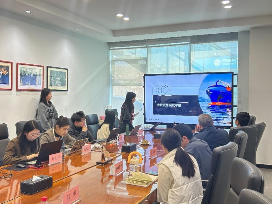 第三小組朱佳鈺、劉博進行了題為《全球變局中中俄貿易的現(xiàn)狀審視、機遇探尋與前景展望》的匯報。她們從中俄貿易規(guī)模與結構、貿易總額變化出發(fā),詳細分析了中俄貿易現(xiàn)狀,并著重介紹了中俄在家具產(chǎn)業(yè)鏈中潛在的合作與互補關系。最后,她們總結了中俄貿易面臨的機遇與風險,并從不同層面提出應對措施。