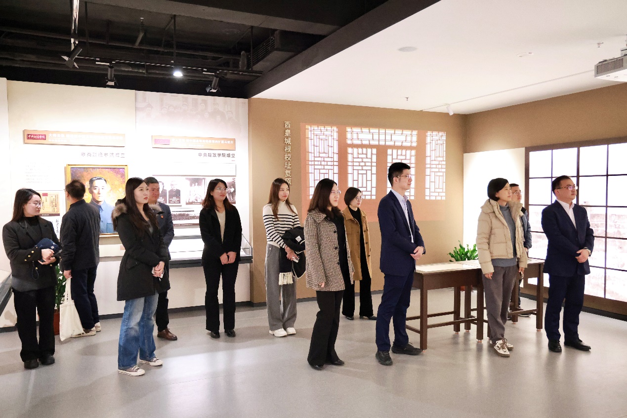 會(huì)前,江蘇銀行總行一行參觀了中央財(cái)經(jīng)大學(xué)校史館,了解中央財(cái)經(jīng)大學(xué)75年的辦學(xué)歷史、學(xué)科特色與發(fā)展成效等情況。