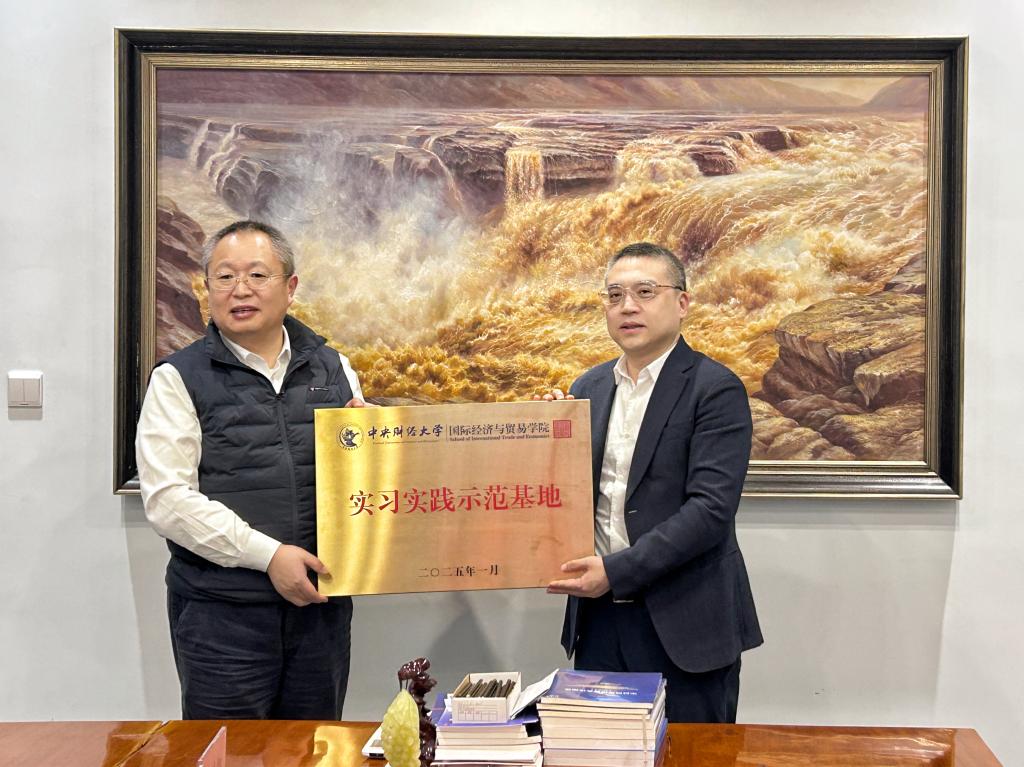 座談交流后舉行了“實(shí)習(xí)實(shí)踐示范基地”授牌儀式,由中央財(cái)經(jīng)大學(xué)國(guó)際經(jīng)濟(jì)與貿(mào)易學(xué)院院長(zhǎng)張曉濤向大連瀚聞資訊有限公司董事長(zhǎng)童友俊授予示范基地牌匾。