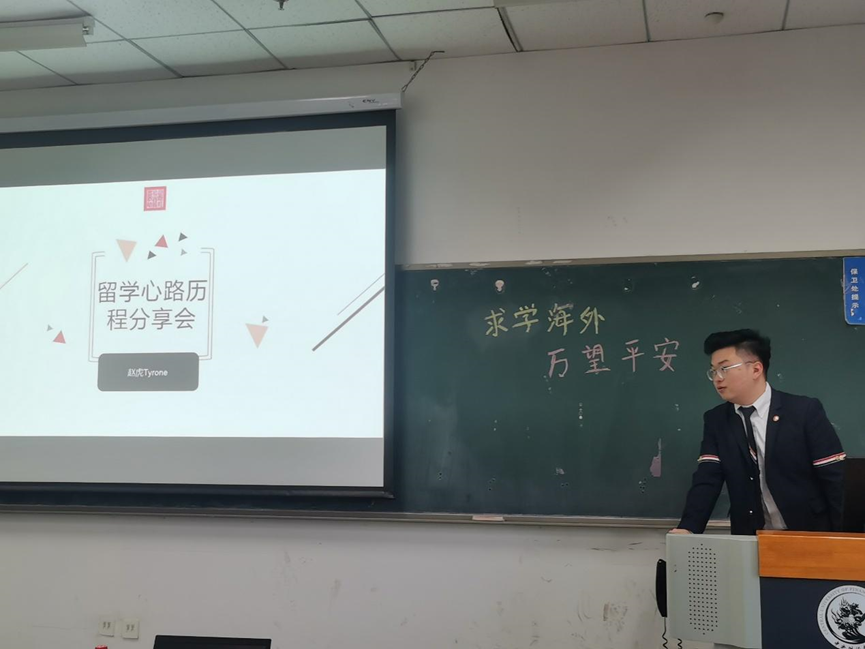 為警醒漂泊在外的學(xué)術(shù)人才防范好意外風(fēng)險(xiǎn),踐行總體國(guó)家安全觀,統(tǒng)籌發(fā)展和安全,統(tǒng)籌傳統(tǒng)安全和非傳統(tǒng)安全,營(yíng)造慶祝建黨100周年良好氛圍,2021年4月29日下午我院龍馬職談系列第四期講座“求學(xué)海外,萬(wàn)望平安”留學(xué)經(jīng)歷分享講座于沙河校區(qū)主教樓308教室成功舉辦。本次活動(dòng)邀請(qǐng)到中央財(cái)經(jīng)大學(xué)國(guó)際經(jīng)濟(jì)與貿(mào)易學(xué)院趙虎老師作為主講嘉賓,圍繞習(xí)近平新時(shí)代中國(guó)特色社會(huì)主義思想中提出的“堅(jiān)持總體國(guó)家安全觀”,基于當(dāng)今“后疫情形勢(shì)”,為學(xué)生們普及留學(xué)相關(guān)的注意事項(xiàng),分享海外學(xué)術(shù)經(jīng)歷,科普中國(guó)官方留學(xué)生組織,加強(qiáng)海外留學(xué)生的自我防范意識(shí),鼓勵(lì)同學(xué)們努力學(xué)習(xí)積極實(shí)踐。學(xué)院代團(tuán)委書(shū)記侯思宇老師和各年級(jí)本科生參與本次活動(dòng)。