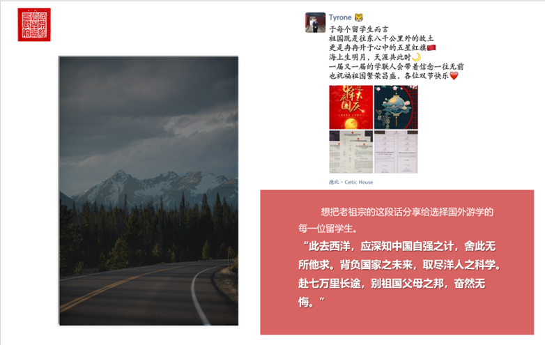 在講座過(guò)程中,趙虎老師多次強(qiáng)調(diào),無(wú)論何時(shí)何地,祖國(guó)永遠(yuǎn)是中華兒女最堅(jiān)實(shí)的依靠,留學(xué)生團(tuán)體客居他鄉(xiāng),更能體會(huì)到祖國(guó)母親的溫暖。在海外,留學(xué)生要時(shí)刻注意保持文明形象,因?yàn)?/span>留學(xué)生代表著中華民族的形象,展示著泱泱大國(guó)的風(fēng)采,體現(xiàn)著中華民族的涵養(yǎng)。