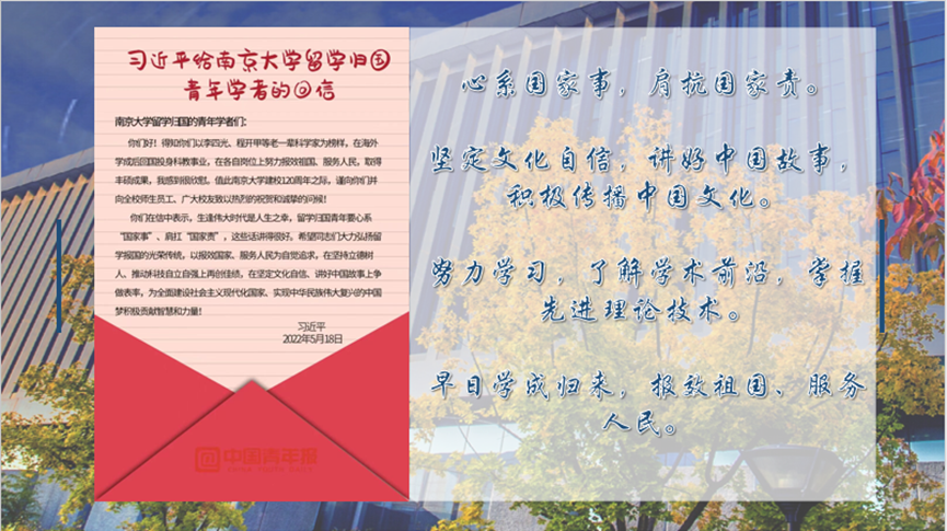 在講座的結(jié)尾,趙虎老師引用 “赴七萬里長途,奮然無悔”,鼓勵(lì)同學(xué)守望互助、不忘初心。在國外留學(xué)生活中努力學(xué)習(xí)、積極向上,傳播好中國聲音,承擔(dān)起中國青年的使命與責(zé)任。