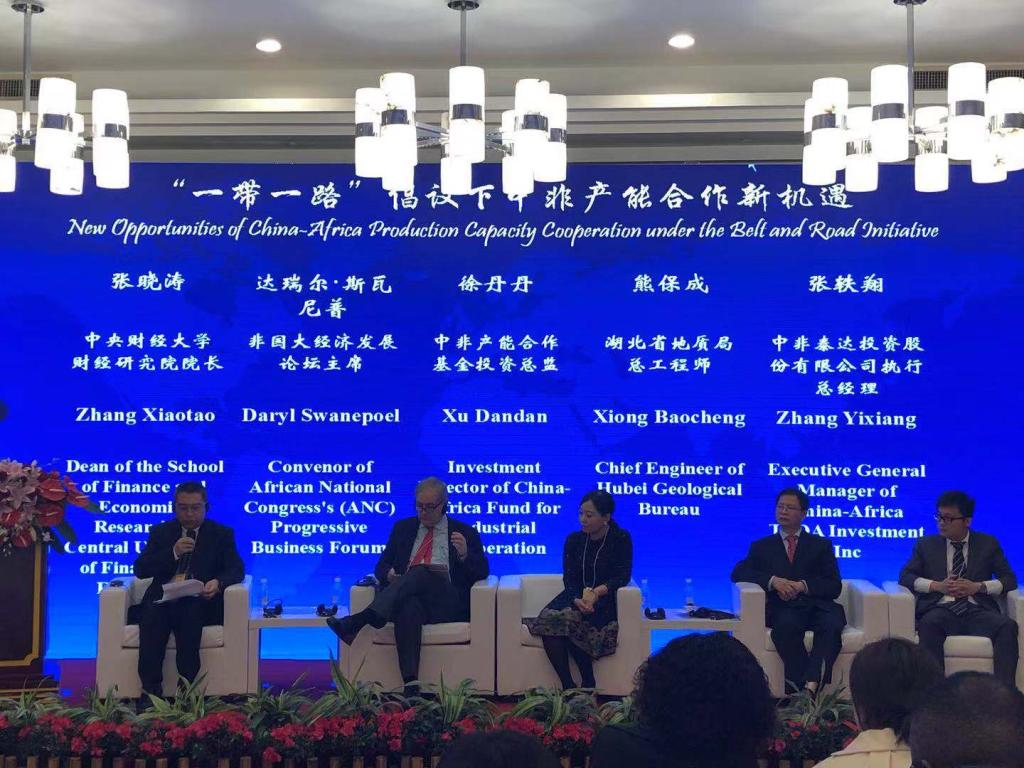 圖:張曉濤教授主持2018年中國中部國際產能合作論壇暨企業(yè)對接洽談會非洲專場