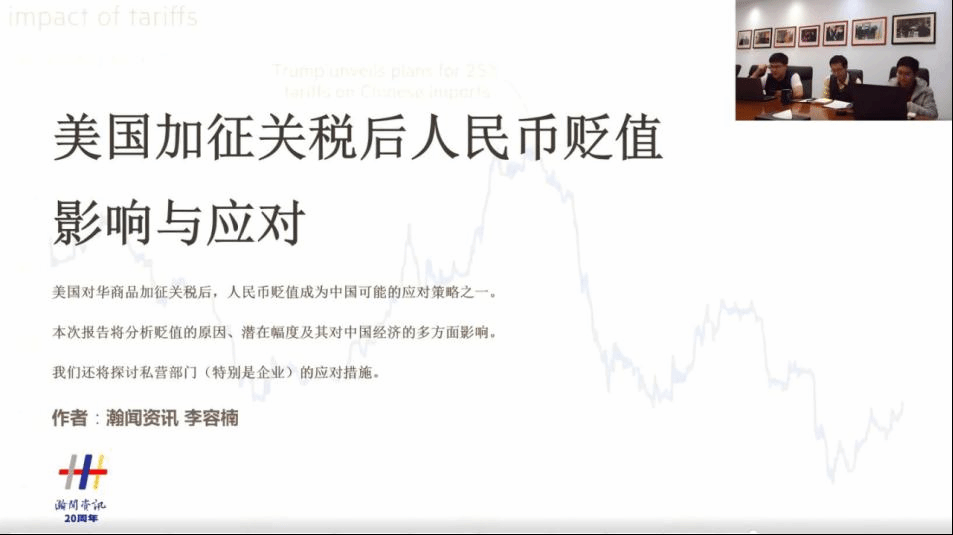 李容楠(大連瀚聞資訊有限公司項目總監(jiān))做了題為《美國對華商品加稅后,人民幣不得不貶值?》的專題報告: