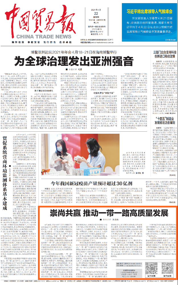 近日,我院張曉濤教授以中國貿(mào)促會專家委員會委員、中央財經(jīng)大學(xué)國際經(jīng)濟(jì)與貿(mào)易學(xué)院院長身份接受了《中國貿(mào)易報》的采訪,就推動“一帶一路”高質(zhì)量發(fā)展發(fā)表了意見建議,相關(guān)采訪內(nèi)容刊登在《中國貿(mào)易報》2021年04月22日第A1版。