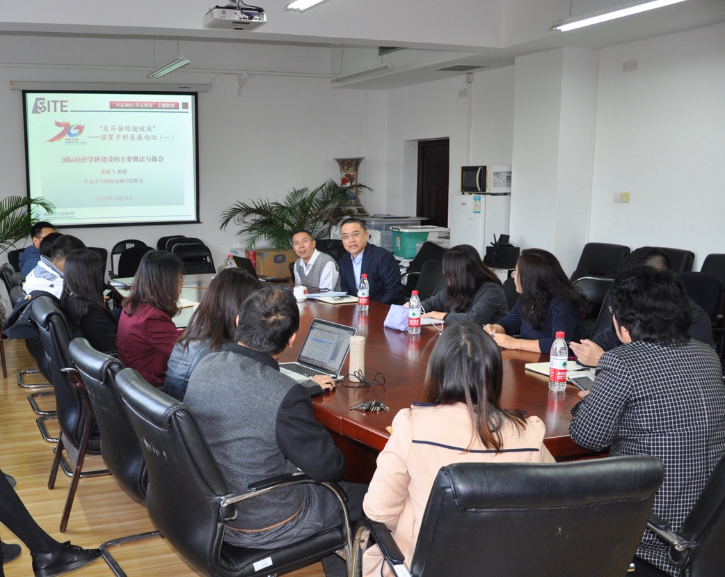 為慶祝學(xué)校建校70周年,扎實(shí)推進(jìn)“不忘初心、牢記使命”主題教育,促進(jìn)學(xué)院學(xué)科發(fā)展,2019年10月15日下午,國(guó)際經(jīng)濟(jì)與貿(mào)易學(xué)院在學(xué)院南路校區(qū)主教學(xué)樓702會(huì)議室舉行“不忘初心、牢記使命”主題教育學(xué)科建設(shè)經(jīng)驗(yàn)交流會(huì),中山大學(xué)國(guó)際金融學(xué)院院長(zhǎng)黃新飛教授應(yīng)邀來(lái)我院交流人才培養(yǎng)與學(xué)科建設(shè)經(jīng)驗(yàn)。交流會(huì)由院長(zhǎng)張曉濤教授主持,院黨委書(shū)記徐淼,副院長(zhǎng)李瑞琴、王立勇教授,各系系主任、教師以及相關(guān)科室老師等20余人參加了交流活動(dòng)。