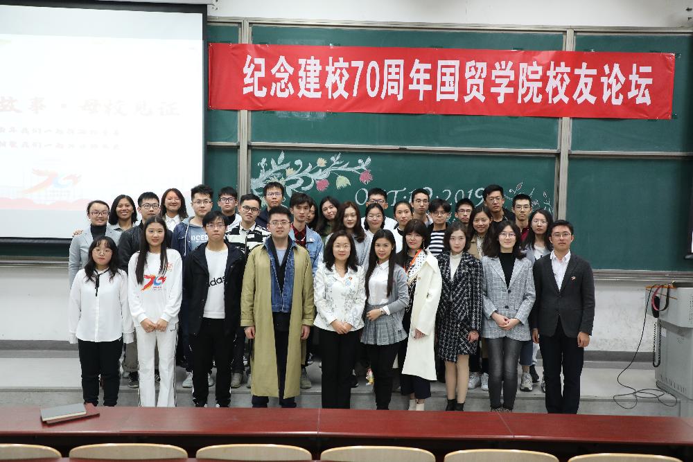 2019年10月19日下午,紀(jì)念建校70周年國(guó)貿(mào)學(xué)院校友論壇(二)在沙河?xùn)|區(qū)主教218成功舉辦。應(yīng)邀參加本次論壇的校友嘉賓有學(xué)院01級(jí)本科、05級(jí)碩士、在國(guó)家發(fā)改委工作的李春根校友,08級(jí)本科、在德勤咨詢(北京)有限公司工作的吳茜校友,09級(jí)本科、在天弘基金管理有限公司工作的戴騫校友,10級(jí)本科、14級(jí)碩士、在申萬宏源集團(tuán)股份有限公司工作的杜伯釗校友,11級(jí)本科、在梧桐樹資本工作的陳芳平校友和14級(jí)本科、清華大學(xué)直博生吳夢(mèng)濤校友。學(xué)院100余名在校師生參加論壇。論壇由學(xué)院副院長(zhǎng)李瑞琴教授主持。