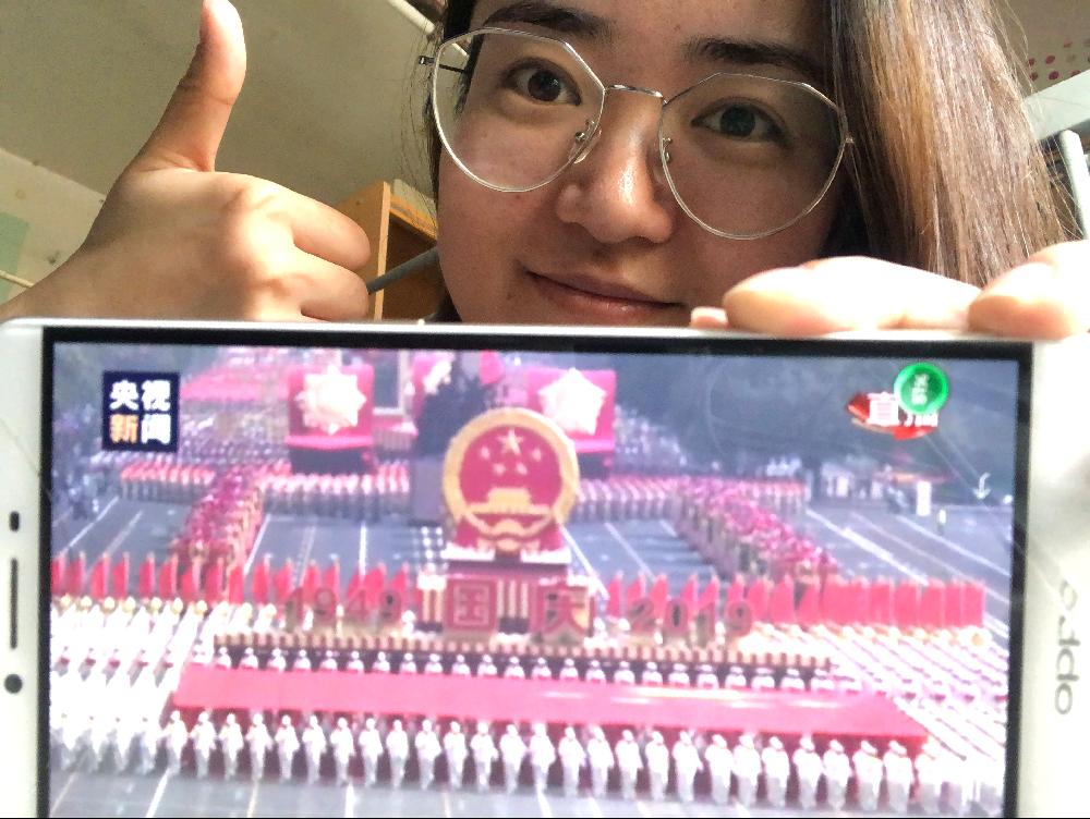活動(dòng)第三項(xiàng),觀看閱兵儀式。5名黨支部成員集聚食堂電視前,觀看中央電視臺(tái)國慶閱兵儀式直播。未能到場(chǎng)的支部成員各自在其他網(wǎng)絡(luò)及電視平臺(tái)同時(shí)觀看了此次閱兵。閱兵過程中,中國軍人訓(xùn)練有素、英姿颯爽,軍隊(duì)機(jī)械化、信息化程度高。群眾方陣的大學(xué)生朝氣蓬勃,意氣風(fēng)發(fā),代表了當(dāng)代中國青年的風(fēng)采。閱兵儀式呈現(xiàn)出了一個(gè)嶄新的時(shí)代、一個(gè)充滿希望的中國,展現(xiàn)出了中國強(qiáng)軍之路的迅速發(fā)展。觀看過程中,支部成員掌聲不斷、歡呼不斷,為祖國的強(qiáng)大驕傲自豪,同時(shí)祝福祖國更加繁榮昌盛。