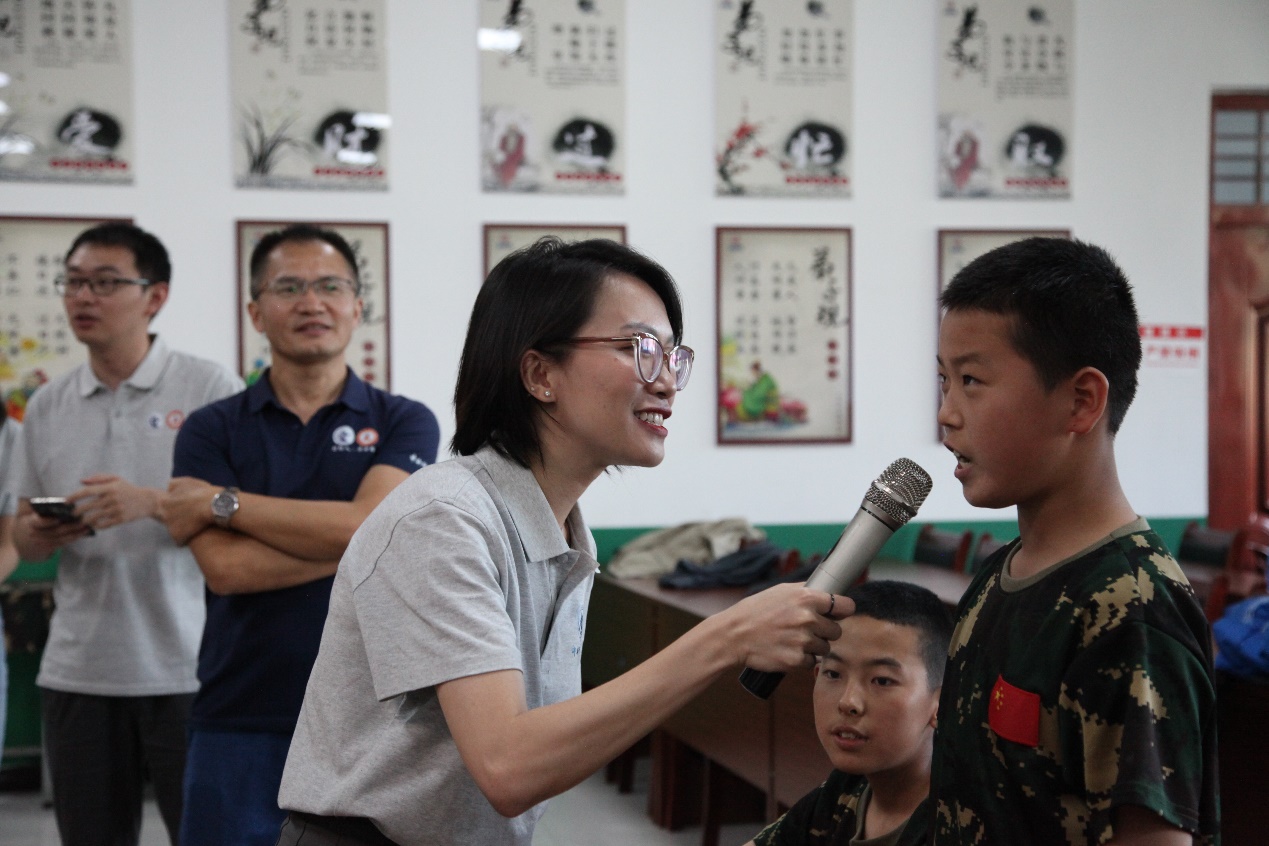 調(diào)研團(tuán)隊(duì)來到訓(xùn)練營報(bào)告廳,與參加夏令營的孩子們展開熱烈交流。來自越南的兩位留學(xué)生向孩子們分享自己來到中國求學(xué)的故事,教給孩子們一些簡單的問候詞語。隨后,隊(duì)員們將知識科普與趣味問答的形式相結(jié)合,開展了長征歷史為主題的紅色教育講座,引導(dǎo)學(xué)生感悟長征精神。