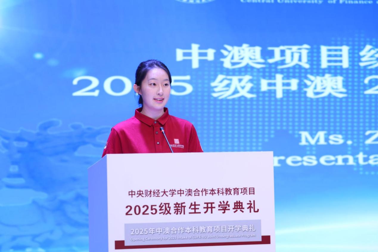中澳項(xiàng)目統(tǒng)招生新生代表2025級中澳2班趙芳其同學(xué)發(fā)言