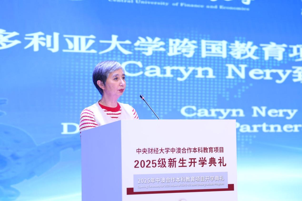 維多利亞大學(xué)跨國教育項(xiàng)目(TNE)主任卡琳·內(nèi)里致辭。她代表維多利亞大學(xué)歡迎新生加入這一聯(lián)合項(xiàng)目,強(qiáng)調(diào)該項(xiàng)目旨在為學(xué)生提供國際認(rèn)可的教育,融合中西方商業(yè)環(huán)境的教學(xué)優(yōu)勢,培養(yǎng)具有全球視野的專業(yè)人才。她指出,該項(xiàng)目具有三大特點(diǎn):全英文授課、現(xiàn)代教學(xué)方法以及前沿商業(yè)技能培養(yǎng),畢業(yè)生將獲得兩國認(rèn)證的高質(zhì)量學(xué)位。校方承諾提供全方位支持,包括學(xué)術(shù)指導(dǎo)和課外資源,并鼓勵學(xué)生利用交流機(jī)會赴澳學(xué)習(xí)。最后,她勉勵新生繼承項(xiàng)目二十余年的學(xué)術(shù)傳統(tǒng),不僅成就個人發(fā)展,也為全球社區(qū)做出貢獻(xiàn)。