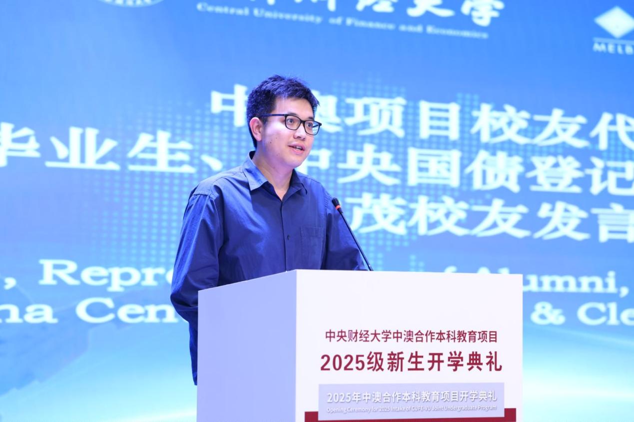 9月22日下午,2025級國際經(jīng)濟(jì)與貿(mào)易學(xué)院中澳合作本科教育項(xiàng)目(以下簡稱“中澳合作項(xiàng)目”)新生開學(xué)典禮在中央財(cái)經(jīng)大學(xué)沙河校區(qū)融想大廳隆重舉行。出席典禮的維多利亞大學(xué)代表有副校長羅伯·斯特拉蒂教授、跨國教育項(xiàng)目主任卡琳·內(nèi)里女士、跨國教育教學(xué)部主任拉奎爾·里恰爾迪女士、英語中心主任黛安娜·麥基尼女士、跨國教育項(xiàng)目經(jīng)理岳濤先生及合作協(xié)調(diào)員迪航·泰特女士。出席此次典禮的中央財(cái)經(jīng)大學(xué)校方代表有中央財(cái)經(jīng)大學(xué)副校長李濤、國際經(jīng)濟(jì)與貿(mào)易學(xué)院院長張曉濤、黨委書記徐淼、副院長李瑞琴、中央財(cái)經(jīng)大學(xué)國際合作處副處長郭楓、學(xué)院教師代表、全體輔導(dǎo)員,中澳項(xiàng)目校友代表、2020屆畢業(yè)生、中央國債登記結(jié)算有限責(zé)任公司林茂出席了此次典禮。典禮由副院長李瑞琴主持,在雄壯的中華人民共和國國歌中拉開帷幕。
