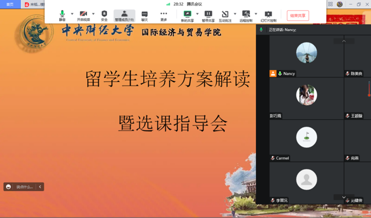 針對留學(xué)生教育的專有特點(diǎn),學(xué)院專門開展留學(xué)生培養(yǎng)方案解讀暨選課指導(dǎo)會,幫助留學(xué)生梳理培養(yǎng)方案,解答選課疑問,做好課程規(guī)劃,為學(xué)生有序完成學(xué)業(yè)提供保障。對于留學(xué)生的文化差異,語言困難,學(xué)院定期開展網(wǎng)絡(luò)教學(xué)座談會,了解留學(xué)生的困難和需求,獲得信息反饋,使得學(xué)生“問問有解答,事事有反饋”。為保障留學(xué)生全面發(fā)展,學(xué)院定期開展專門化、常態(tài)化的學(xué)風(fēng)教育。在強(qiáng)化教育管理的基礎(chǔ)上,學(xué)院還高度重視留學(xué)生心理健康教育,注重與學(xué)生保持密切溝通,多維度、多渠道做好對留學(xué)生的人文關(guān)懷,進(jìn)一步提升留學(xué)生培養(yǎng)的精細(xì)化水平。